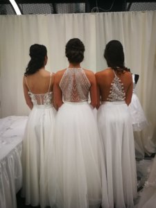 A tervezőkhöz érkező menyasszonyok döntő többsége mindig hoz magával örömanyákat, koszorúslányokat, és a menyecskeruhát is szeretik ugyanott elkészíttetni. Tehát mindjárt több kapacitást is lefoglalnak.